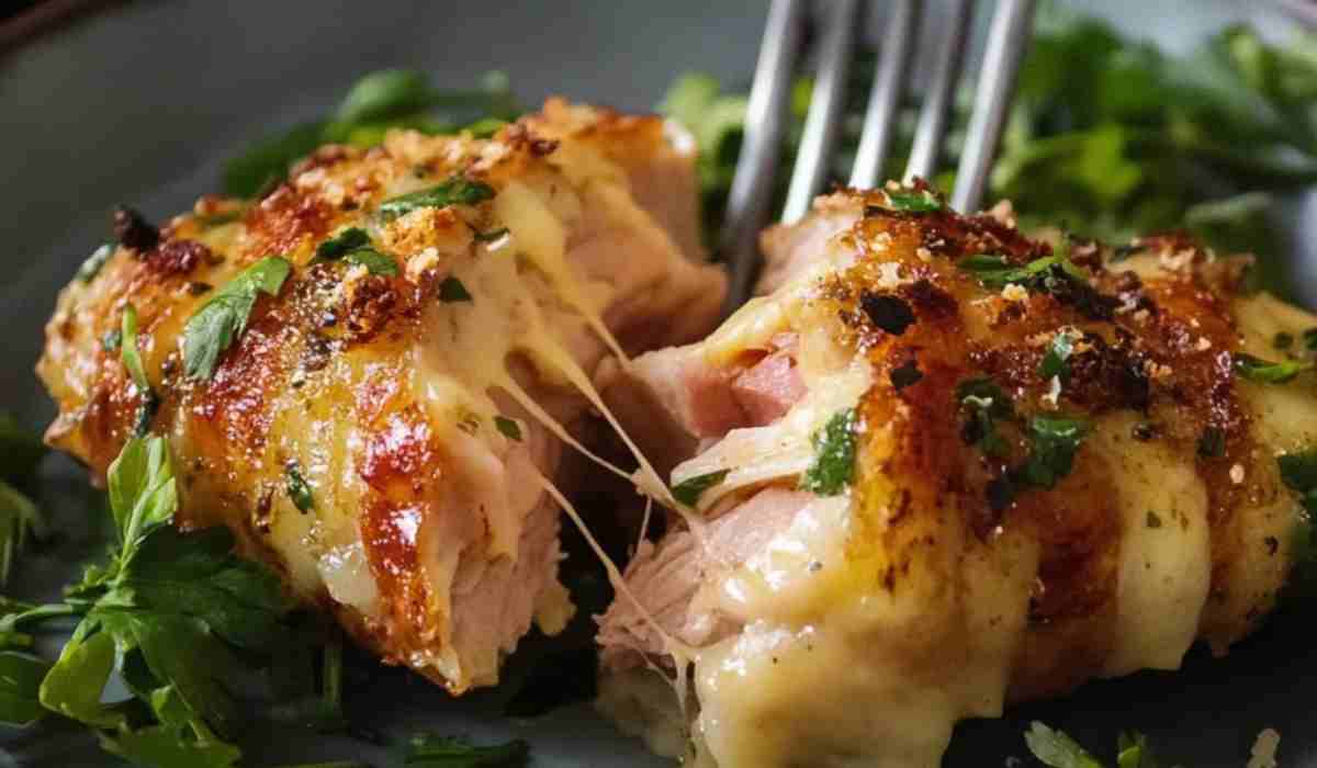 - Hornea el pollo en el horno precalentado durante 25-30 minutos, o hasta que el pollo esté completamente cocido y el queso esté burbujeante y dorado. Asegúrate de no sobrecocinar el pollo, ya que podría secarse.